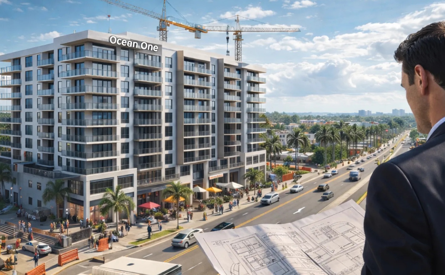 Ocean One has been a plan, a rendering, and years of city meetings. Now it’s a construction project – and it’s changing the calculus for investors along Federal Highway.