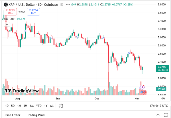 The XRP price is selling at $2.27, reflecting a significant 1.88% daily decline, though trading volume remains strong at $9.35 billion, up 21.37%. XRP’s market capitalization stands at $136.23 billion, cementing its place as a top-five cryptocurrency by valuation.